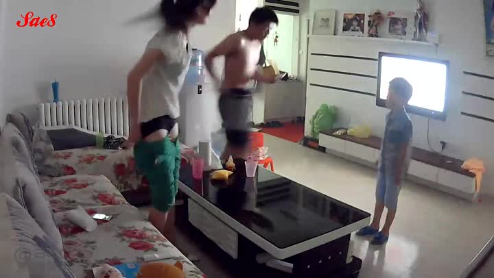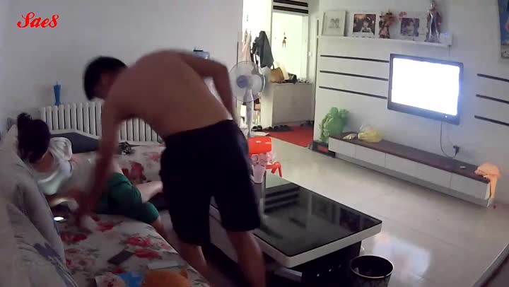 摄像头入侵夫妻沙发做爱儿子闯进来了